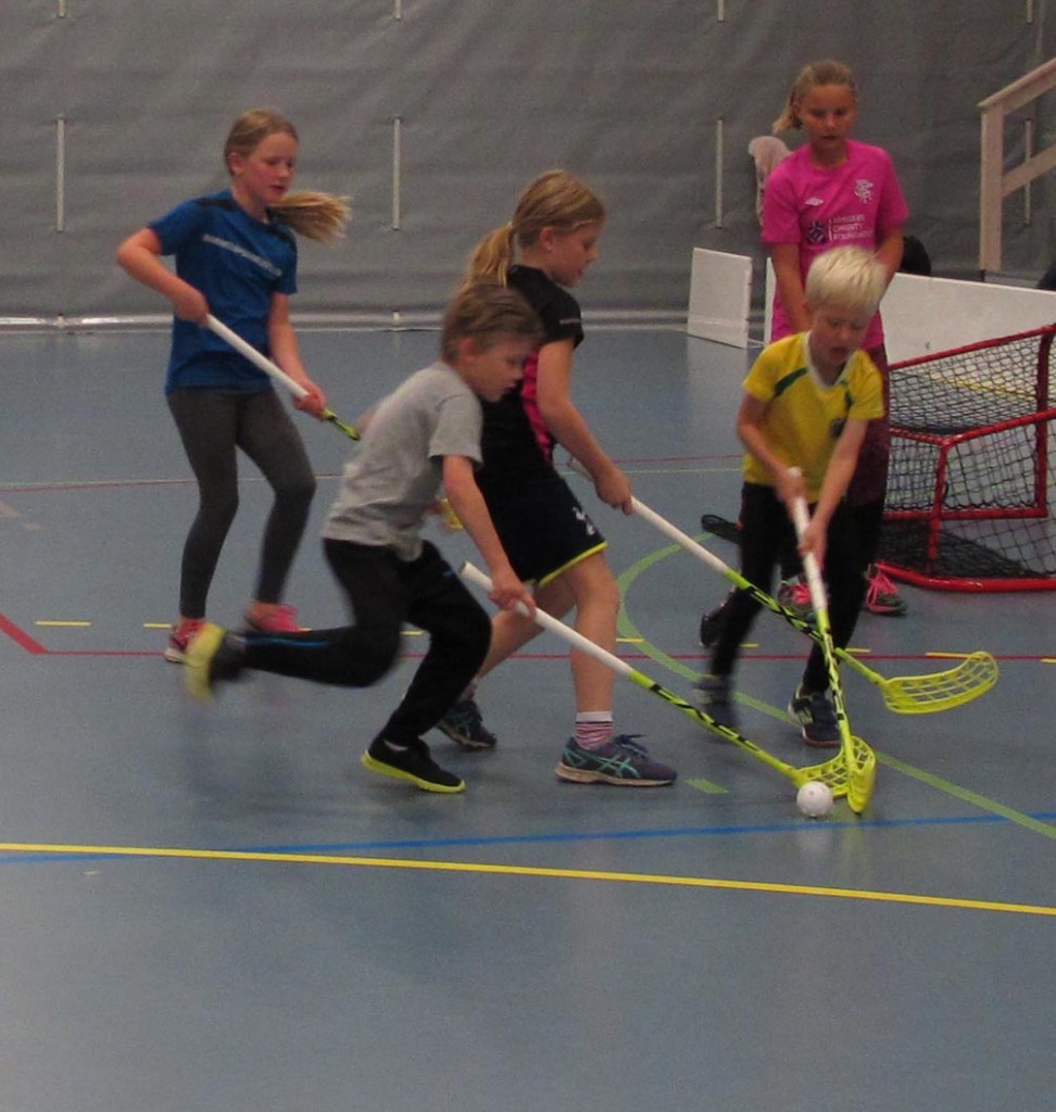 Innebandylaget startet tirsdag opp med treninger for barn og unge. På den første treningen var det nesten 20 barn som hadde møtt opp. Barna fikk først en liten innføring i hva innebandy er for noe, hva som er lov og ikke lov. Deretter ble det spill og enkle passningsøvelser.
