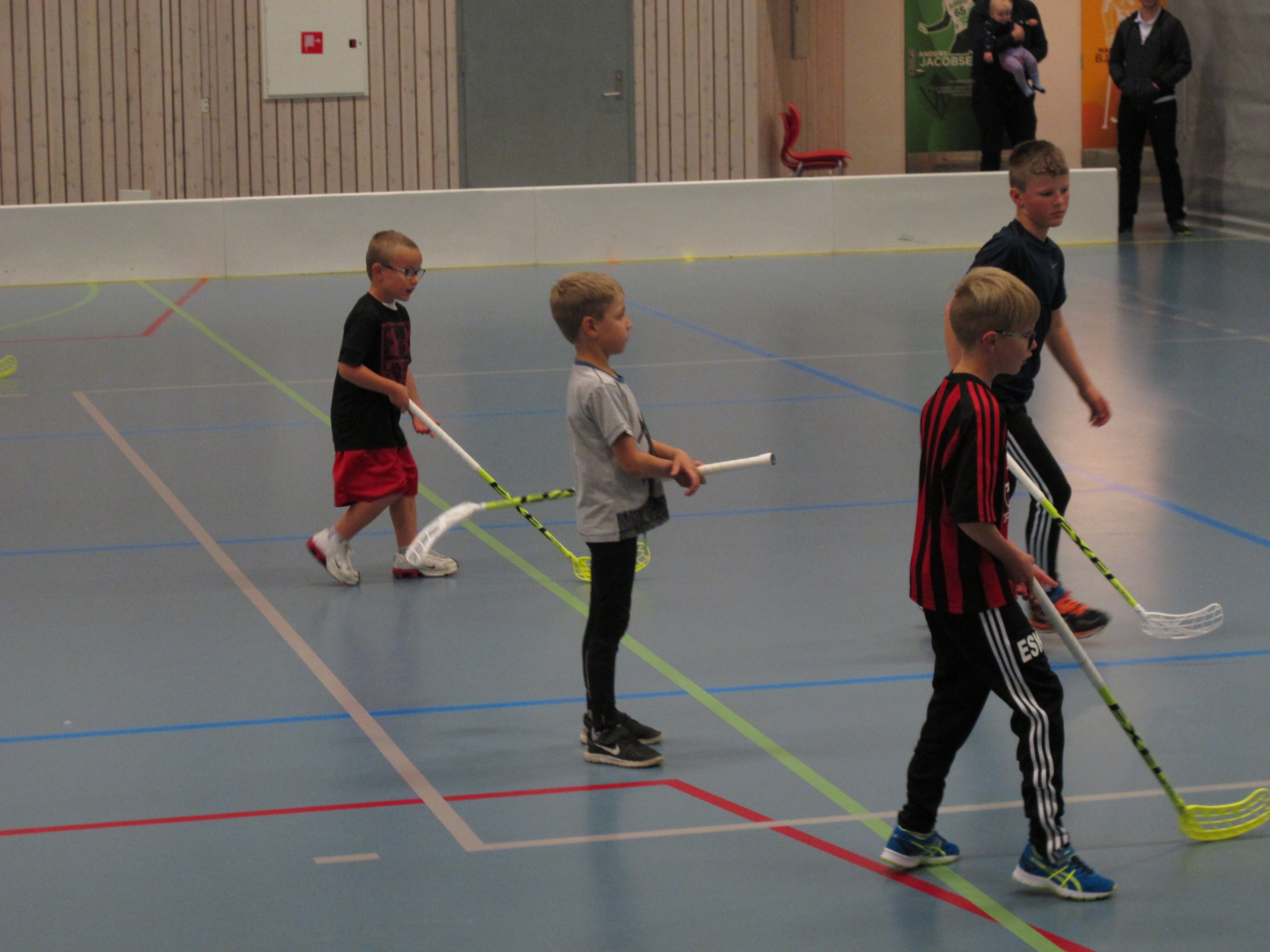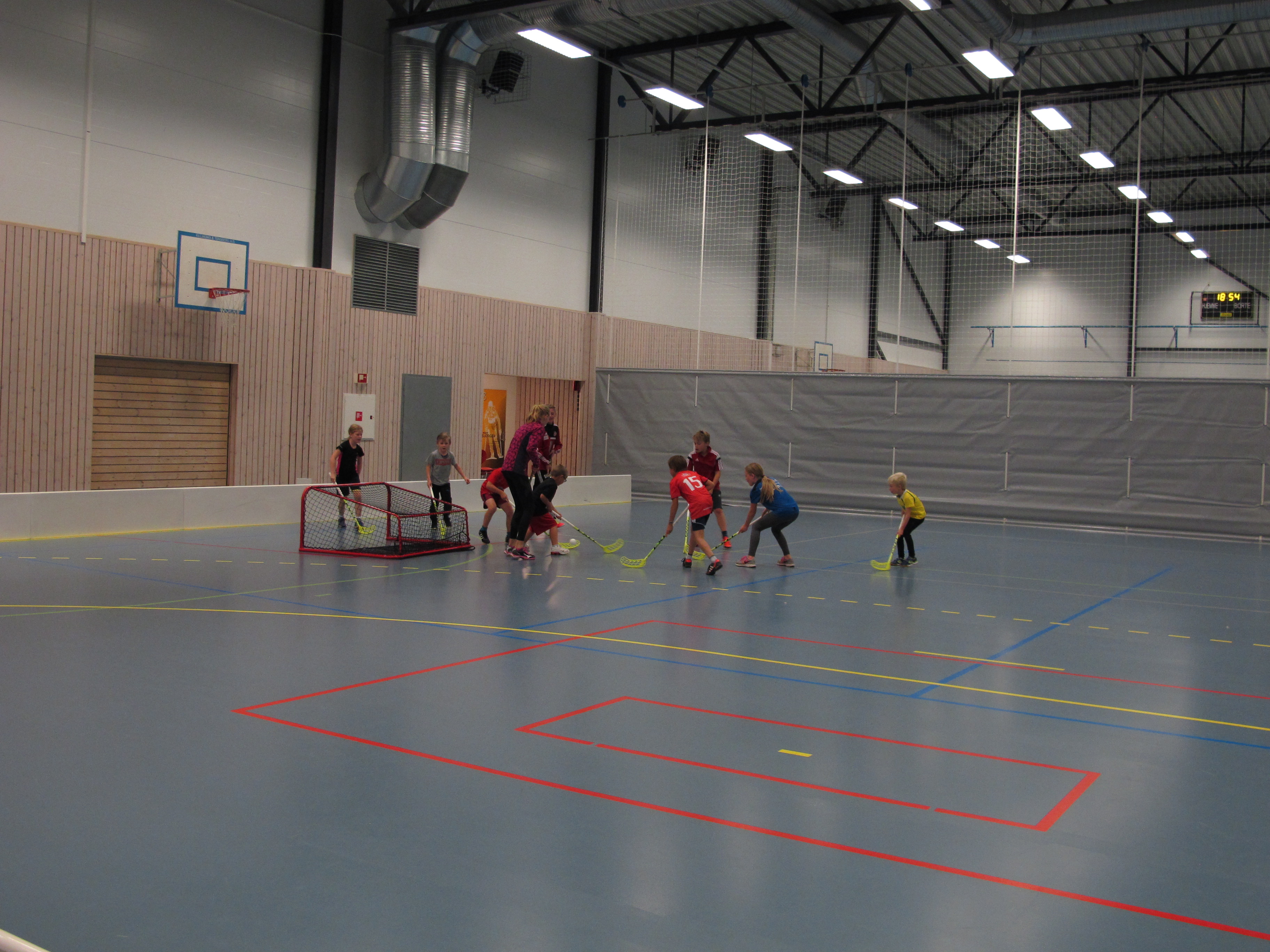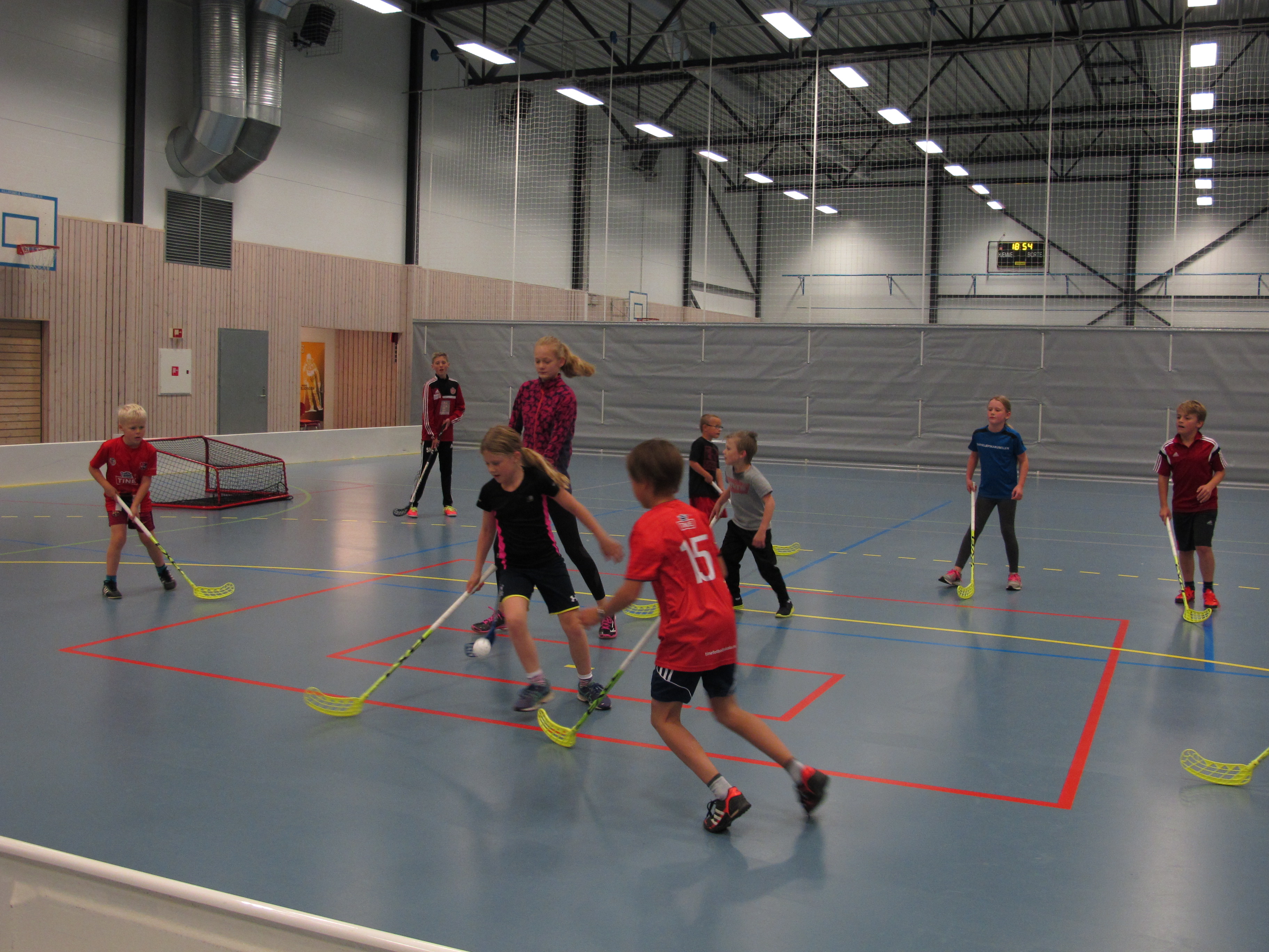 Innebandylaget startet tirsdag opp med treninger for barn og unge. På den første treningen var det nesten 20 barn som hadde møtt opp. Barna fikk først en liten innføring i hva innebandy er for noe, hva som er lov og ikke lov. Deretter ble det spill og enkle passningsøvelser.